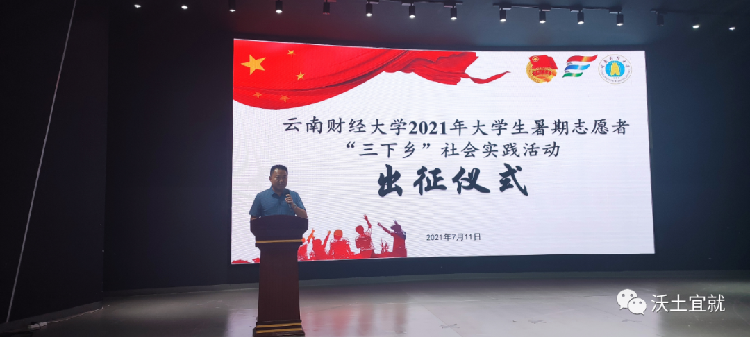 宜就镇党委书记张春培同志赴云南财经大学参加大学生志愿者暑期“三下乡”社会实践团出征仪式。