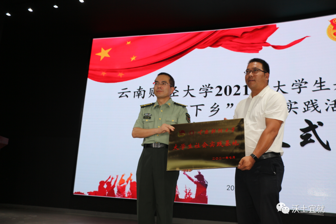 学校学生处处长、学工部、武装部部长寸丽锋同志为云南财经大学社会实践基地授牌。