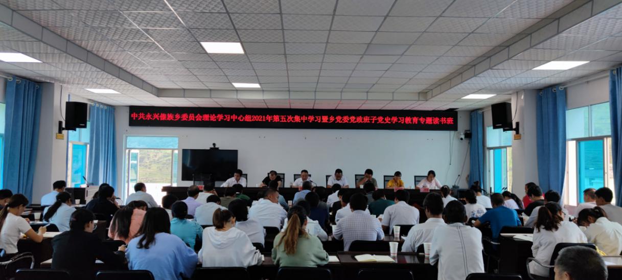 为深入开展党史学习教育,学懂弄通做实党的创新理论,从党的百年伟大奋斗历程中汲取继续前进的智慧和力量,7月23日上午,永兴乡举办乡党委理论学习中心组2021年第五次集中学习暨乡党委党政班子党史学习教育专题读书班。全乡干部职工、各村四职共90余人参加学习。