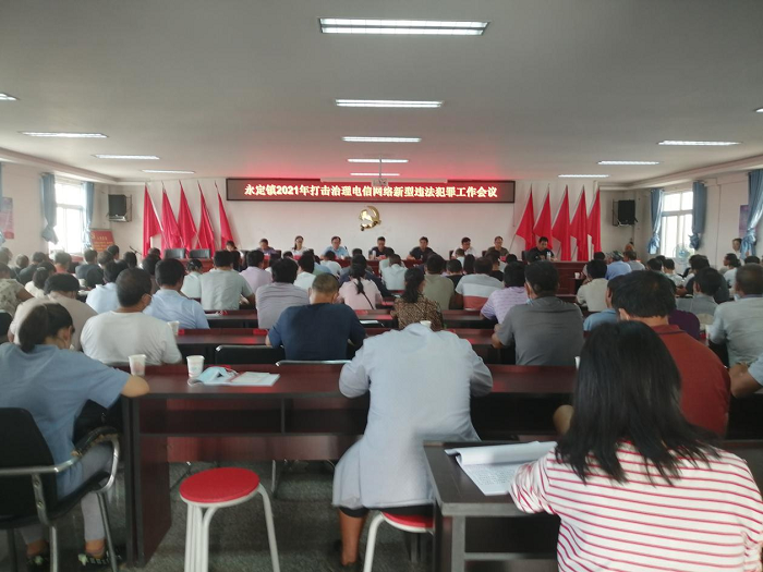 近期,全国各地不法分子利用电信网络,以各种方式实施诈骗的案件高发,为提高群众防范意识,2021年8月20日,永定镇开展了2021年打击治理电信网络新型违法犯罪工作会议,宣讲防范电信诈骗、保障群众生命财产安全。永定镇全体干部职工、各村社区两委成员及村民小组长共160余人参会,会议由永定镇人民政府副镇长刀兴祥主持。