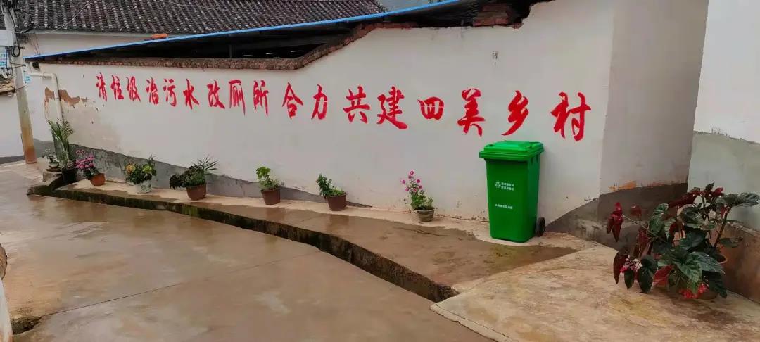干净整洁的村间小道上鲜艳醒目的宣传标语