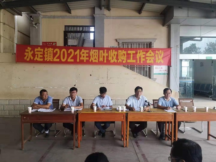 8月25日上午,永定镇召开2021年烤烟收购工作会议,镇党政班子成员、各相关站所负责人、6个涉烟村委会党总支书记、烟叶站职工、合作社成员以及全体烟叶验收员共80余人参加会议。