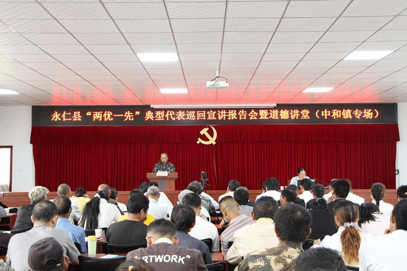 为扎实做好省委、省政府楚雄现场办公会及县第十四次党代会精神的宣传工作,进一步激发干劲、凝聚力量,结合当前党史学习教育,永仁县“两优一先”典型代表巡回宣讲报告会暨道德讲堂于2021年8月28日在中和镇举行,县处级二级调研员冯会珍、永仁县国有林场乔地山瞭望台森林管护人员善从礼、永仁县税务局职工姜毓平进行专题宣讲,县委宣传部副部长李正梅主持会议,全镇367名党员及干部参加了会议。
