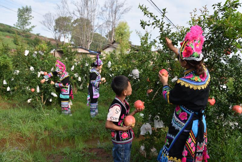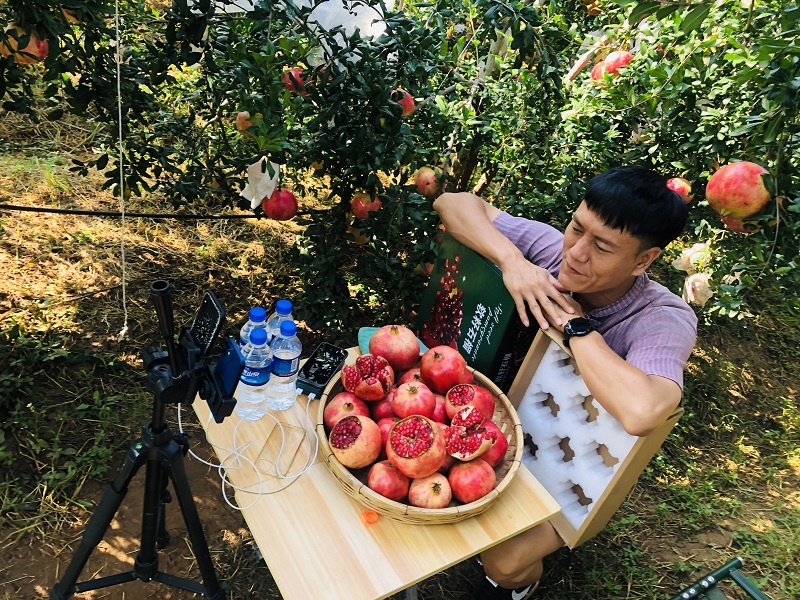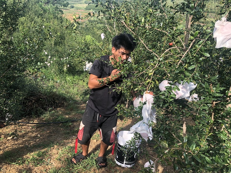 据了解,软籽石榴采摘期将从9月初持续到10月底。吴金龙家种植石榴30多亩,其中有20亩已经进入盛果期,亩产值能达到2万元。目前,麦拉像吴金龙这样的石榴种植户共有210余户。全村共种植石榴2100亩,1600余亩处于盛产期,每亩收益最高能达3万余元。而今年在永定镇电子商务中心的带领下,群众开始了微信订单和拼多多果园直供订单模式,拓展了销售渠道,增加了收益。