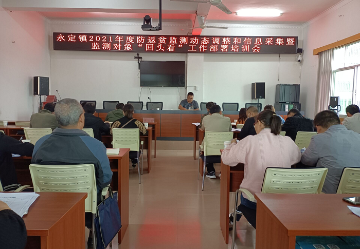 为贯彻落实省、州、县防返贫监测动态调整和信息采集监测对象“回头看”工作部署培训会议精神,10月18日上午,永定镇召开2021年度防返贫监测动态调整和信息采集暨监测对象“回头看”工作部署培训会,会议由分管领导刀兴祥主持,乡村振兴办全体成员、12个村社区副主任、信息采集员、驻村队员共36人参加会议。