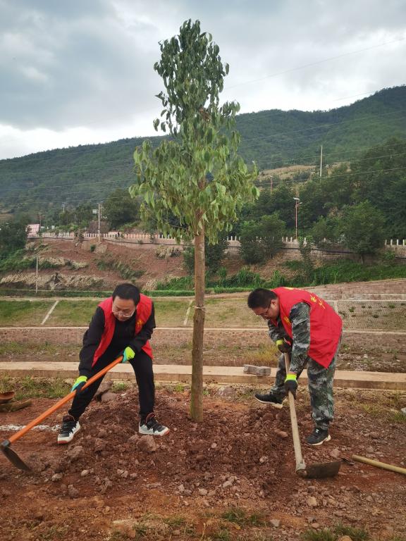 深秋的早晨虽然寒冷,但大家植树的热情不减。植树现场,鲜红的党旗迎风飘扬,参与植树的人员三五成群,分工合作,挥锹挖坑、扶直树苗、培实新土、平整树畦,大家相互配合、通力协作,各道工序一丝不苟,植树过程忙碌而有序。现场呈现一派热火朝天的劳动景象,每个人都兴高采烈地动手栽下一棵棵希望的树苗,经过两个多小时热烈有序的植树劳动,共栽植绿化树苗90余株。