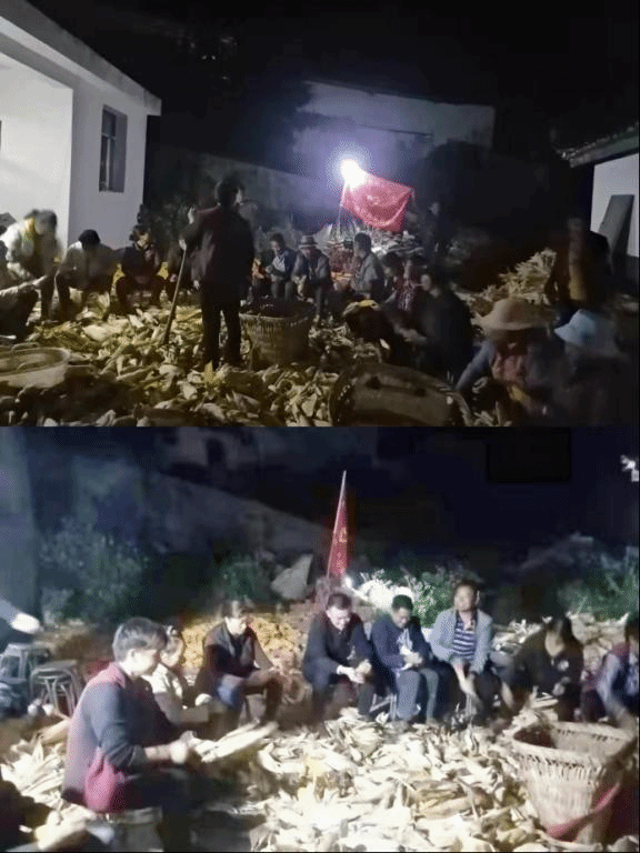 么吉利党支部书记鲁绍华与村党总支书记、驻村第一书记说明情况后,发动村干部及支部党员为苏绍芬家抢收玉米。么吉利村党支部把主题党日搬到困难群众地里,10月26日下午驻村书记杨有顺、支部书记鲁绍华带领支部党员到地里收割玉米,附近群众热心帮忙一起参与抢收。党员干部和群众你一背篓我一背篓,忙活一下午帮助苏绍芬家完成玉米抢收,运到家里。晚上带上党旗,把支部大会开到困难群众家里,开会学习时不忘帮助苏绍芬家剥玉米。把党史学习教育学习落到切实为困难群众办实事、办好事上。经过27名党员干部和群众的热心帮助,苏绍芬家3000余斤的玉米全部撕皮完成晾晒,可增加收入4000余元。