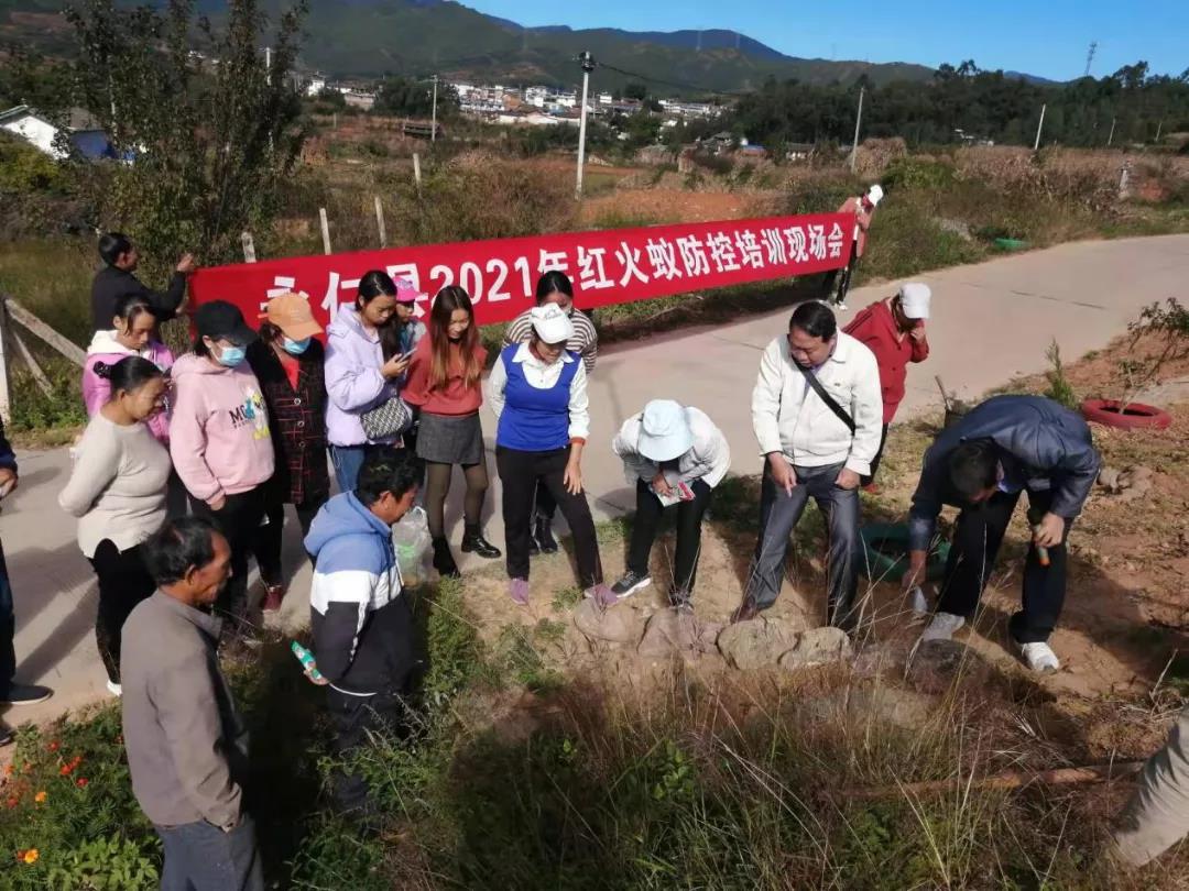 会后分别现场展示了红火蚁防治的两种方式和用药注意事项,并现场发放了防控药物。此次共实施红火蚁防控200亩,发放药物2840袋,发放科学用药宣传材料500份、红火蚁识别与防控宣传材料500份。