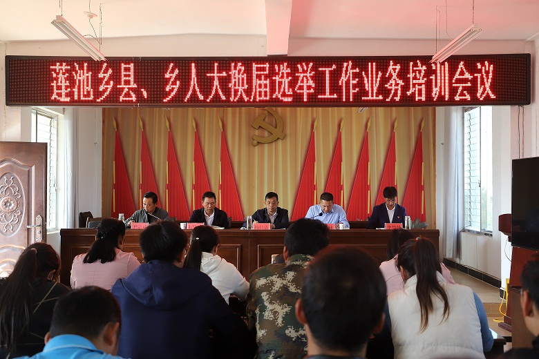 培训会议由莲池乡人大主席尹宗元主持,县人大常委会副主任杨仕清、选联工委主任起从培莅临指导。乡党政领导班子成员,各村党总支书记(主任)、副书记、村委会副主任、村监委主任、驻村工作队员、人大选举罢免信息平台信息联络员,乡管全体干部职工,县级部门派驻莲池单位负责人等共计76人参加会议。