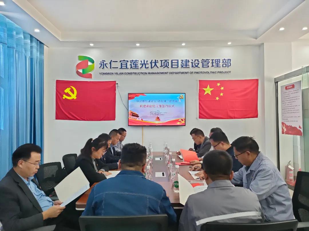 为推动党建工作从“单打独斗”走向“相融共生”,形成推动项目建设的强大政企合力,实现“党建上台阶、组织争先进、党员争优秀、项目创一流”的目标,11月9日下午,宜就镇政府青年人才党支部与国家电投新能源开发分公司宜莲党支部、吉林隆翔工程建设宜莲监理部、中国电建青海工程有限公司宜莲项目部举行了联建联创党支部签约仪式。宜就镇党委书记张春培、镇长罗秋丽、青年人才党支部组织委员杨晓东、三级主任科员黄武,云南国际党委委员、纪委书记、工会主席郑志勇,云南国际党建部主任兰俊宏等出席签约仪式。