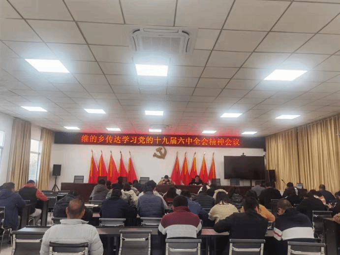2021年11月15日上午,维的乡召开干部职工会议,迅速传达学习党的十九届六中全会精神。全乡干部职工共60余人参加,会议由乡党委书记钟廷伟主持。