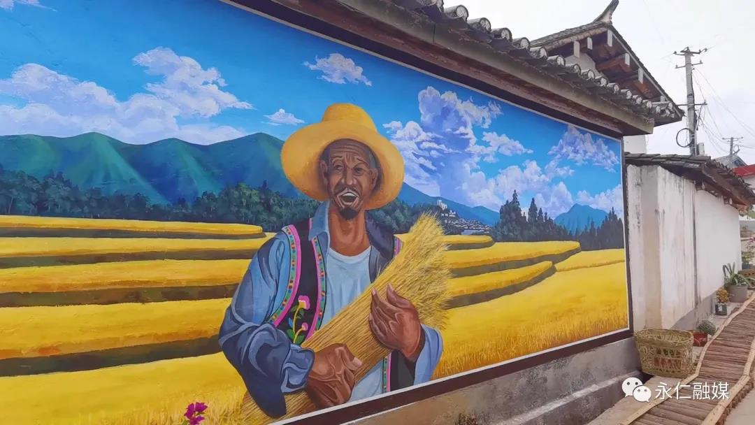 走进永仁县宜就镇宜就村子鲁的新队组,浓郁的农耕文化气息扑面而来,村道两侧一件件传统农耕器具悬挂墙面,一幅幅特色墙绘把村庄装点得绚丽多彩,使原本单调的墙面顿时有了生机。