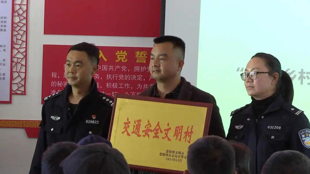 宣传小分队还为地什苴村委会颁发了2021年度楚雄州“交通安全文明村”牌匾。