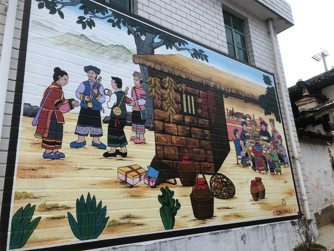 村党总支书记周新林告诉记者,菠萝苴村两个小组84户村民积极响应党委、政府号召,门前卫生实行“三包”,村民自己动手打整房前屋后,还主动把家里的向日葵、陶罐、犁耙、盆栽等捐出来给村里做装饰用;保洁员定期清扫公共区域;党员带领大家每月10日、20日、30日进行卫生大扫除,以前污水乱流、乱堆乱放的现象早已不见。在宜就镇宜就村委会子鲁的新队和拉利坪村委会新组,记者对“四美乡村”有更直观的感受。除了旧物装饰、门前“三包”、定期打扫外,两个村的墙壁还被粉刷一新,春耕夏耘、秋收冬藏及瓜果蔬菜、乡镇全貌等各类墙体彩绘栩栩如生,既扮靓了乡村,又增添了文艺气息。据了解,子鲁的新队和拉利坪村委会新组是两个搬迁村,60户237人几乎都是彝族,1966年就从高寒冷凉的大山里搬了出来,村民经济来源主要靠土地流转、外出务工、种植板栗、核桃和养殖牲畜,年人均收入近2万元。“‘四美乡村’建设是好事,村子变美了,我们住着更舒心,所以大家都积极参与。”热心“向导”、新队的村民起彪带着记者在村里转悠,“以前门前屋后的空地被我们用来堆放柴垛、搭建鸡舍,又臭又乱,现在种上花,整洁多了。”