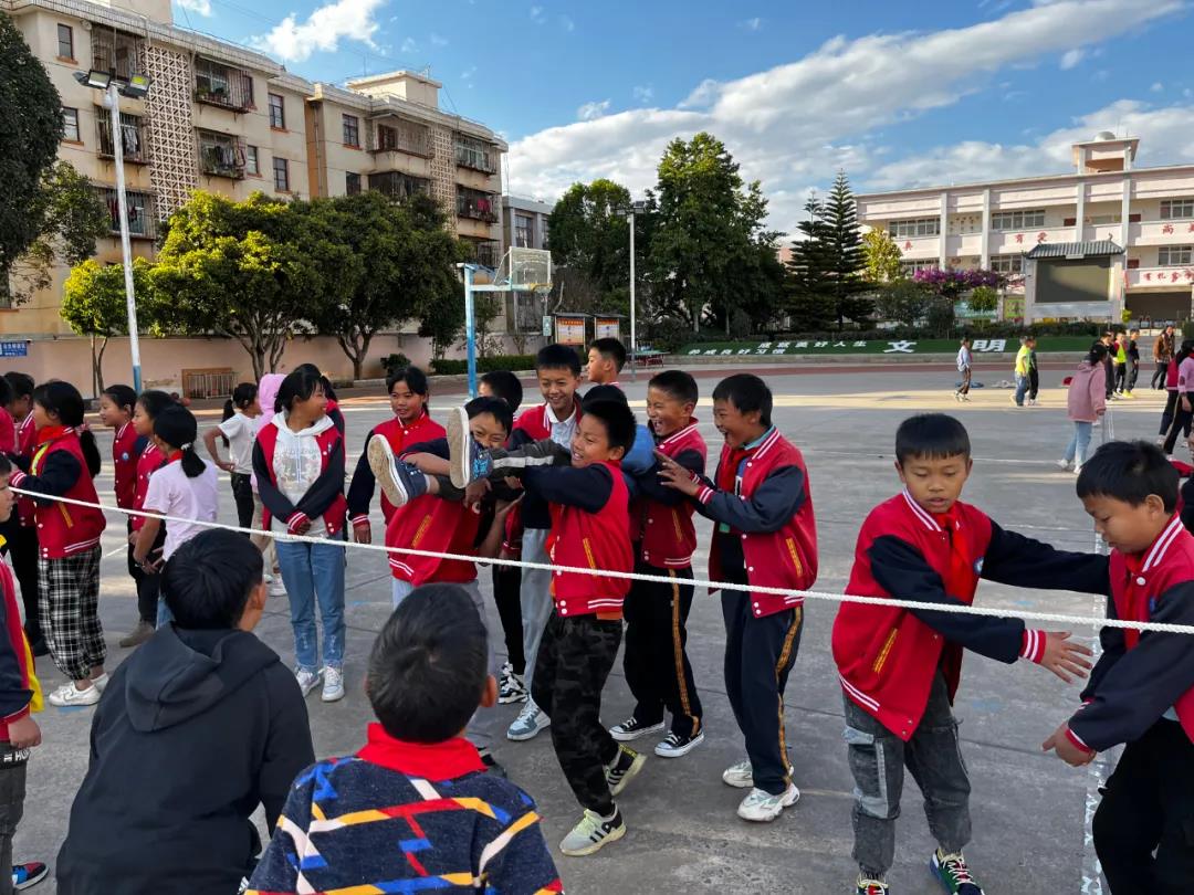 然后,我们在操场上进行了室外活动,通过“穿绳子”和“穿越火线”等丰富有趣的活动,我们从中看出了同学们彰显出的活力与智慧。在这些活动中,他们表现得十分主动、团结,通过互相协作,全班甚至全年级同一目标迈进。这些活动的目的,都是在告诉同学们,外面的世界很精彩,世界上不止有电子游戏一种娱乐方式。在即将到来的假期,也希望同学们可以互相结伴玩耍,不要仅沉浸在家里独自玩游戏。