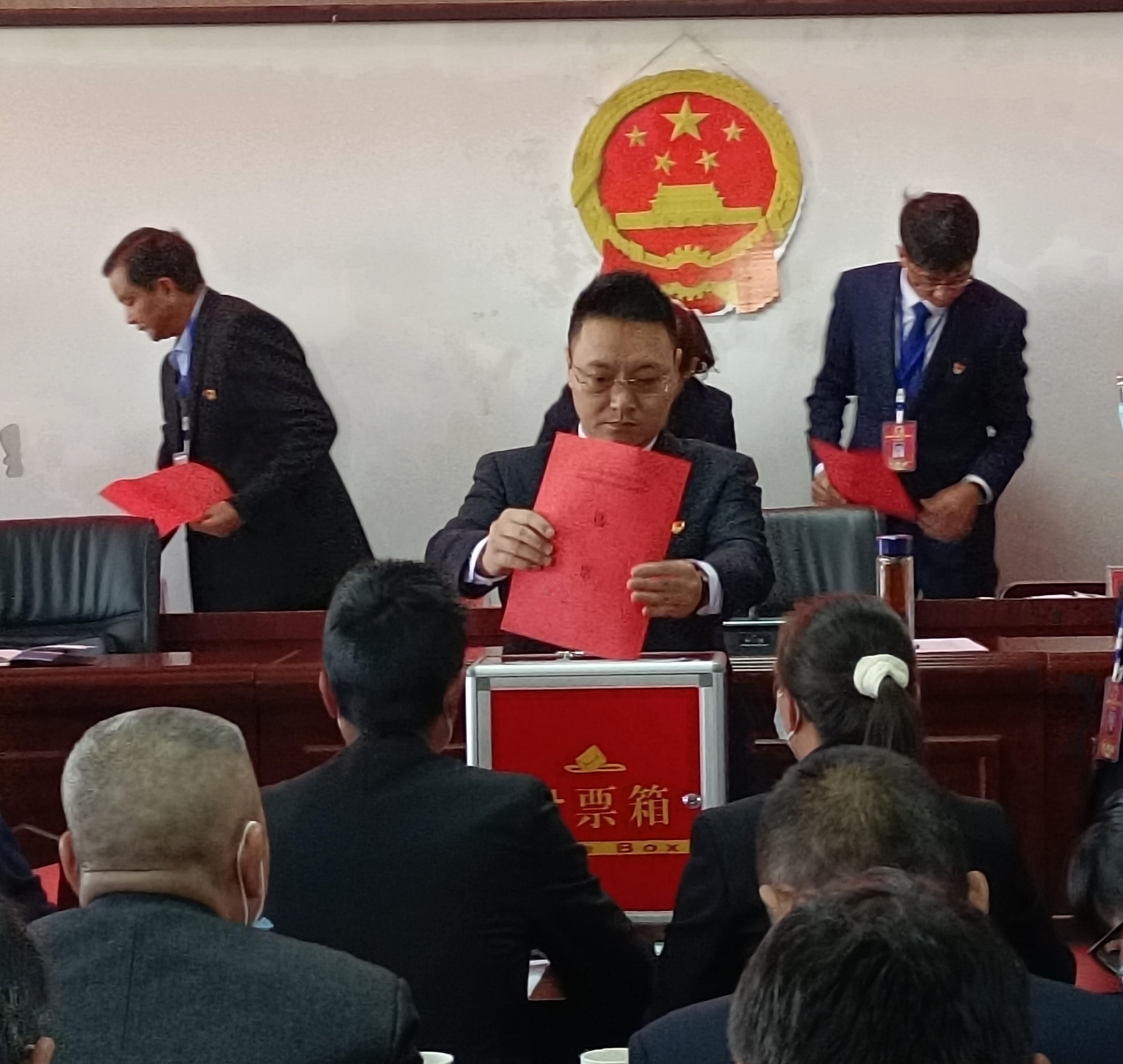 会议按照法定程序,以无记名投票方式选举产生了镇十五届人大主席团主席,镇人民政府镇长、副镇长,并举行了宪法宣誓仪式。