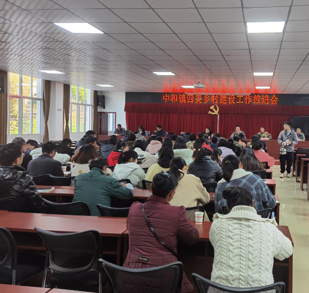 12月15日,中和镇召开“四美”乡村建设工作推进会,镇党政班子成员、全体干部职工、各村书记、驻村第一书记等50余人参加。首先是组织镇村组干部群众到直那上村、岔河冷水箐、万马上村、中和他普里、中和老街5个“四美”乡村示范点进行观摩,各个点相应的村书记就建设情况及主要做法作介绍,分管领导作点评。紧接着在镇五楼会议室召开“四美”乡村工作推进会,会上,直那、万马、中和村党总支书记就“四美”乡村建设经验做法作了交流发言,镇长黄龙从为什么要建“四美”乡村,围绕“五突出”“五结合”如何建好“四美”乡村谈体会。