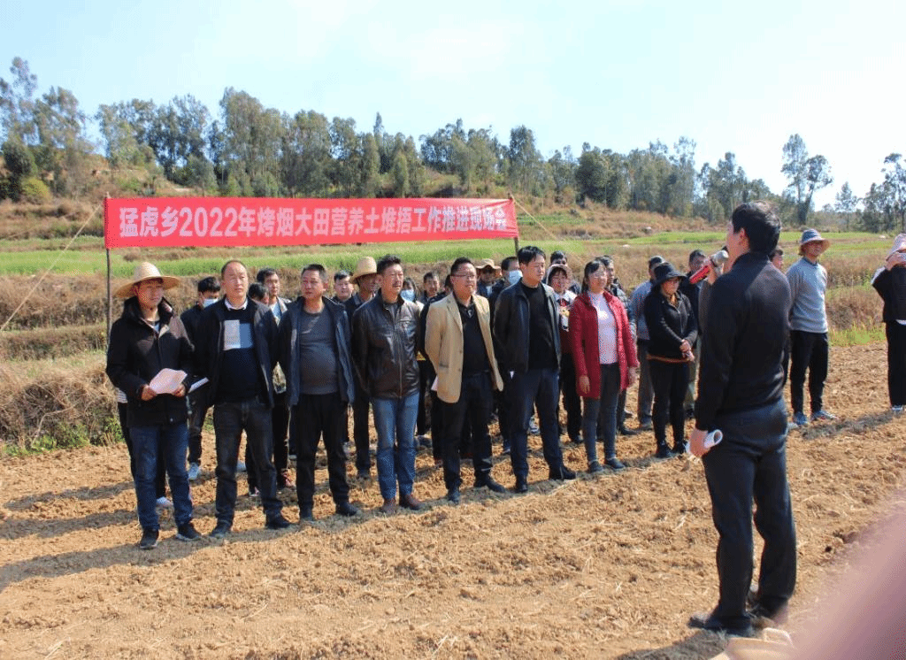 为促进烟叶生产水平在2021年基础上整体提升,全面落实好全乡2022年烟叶生产任务。猛虎乡于2022年1月14日在格租村夜吴坝子召开营养土堆捂推进现场会。