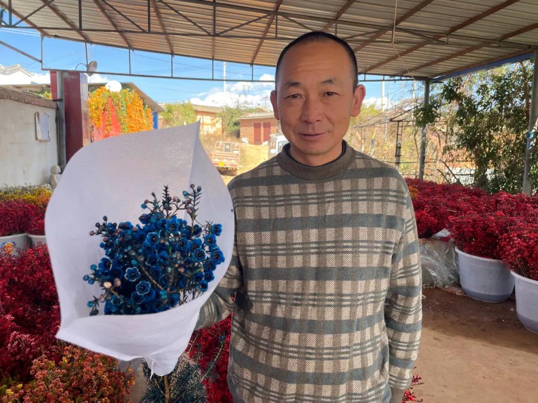 李建祥家种植有70亩鲜花,种植有腊梅、满天星和尤加利等,作为家庭瓶插花,进入老百姓的日常生活,今年产值达100万元以上,春节前销量好,李建祥也乐得笑呵呵。