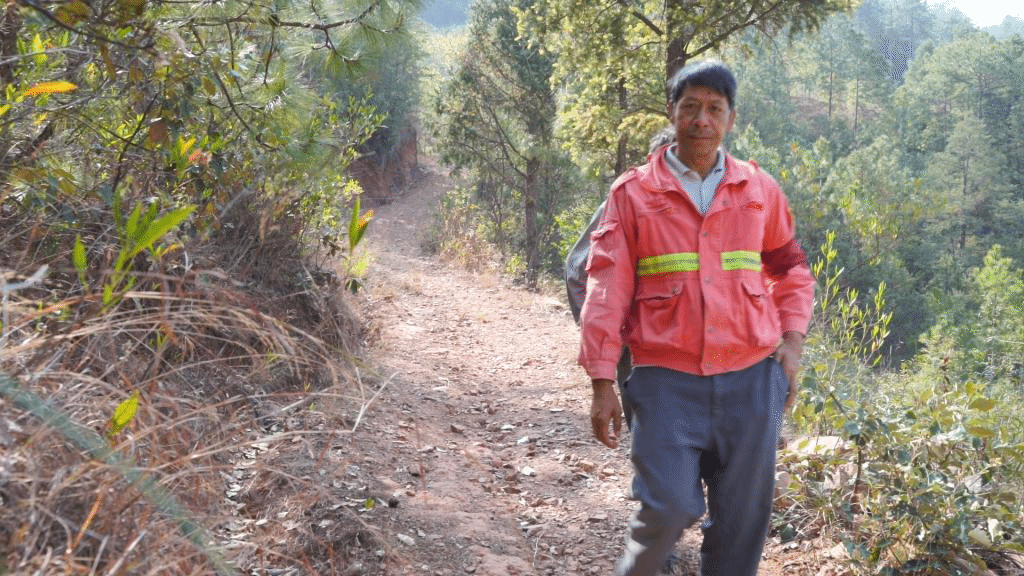 “严禁携带火种进山,严禁在林区吸烟......”在中和镇他的苴村,护林员松江雄挎着防火宣传小喇叭行走在村道上,开展入户宣传,发放森林草原防灭火宣传资料等。松江雄说:“我们要求不漏一户、不漏一人,真正做到守住山、看住人、管住火。”