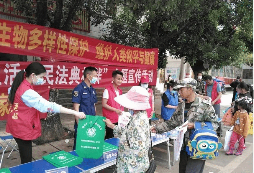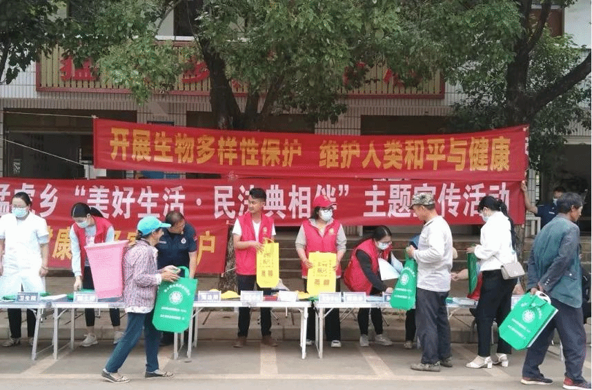 活动中,志愿者们通过户外显示屏显示标语、悬挂布标、发放宣传资料、环保购物袋、讲解生物多样性保护知识等多种形式,普及生物多样性保护知识,宣传人与自然和谐相处环保理念。引导广大群众参与、支持生物多样性保护工作,让“尊重自然、顺应自然、保护自然”的生态文明理念深入人心,助力全乡生物多样性保护工作。