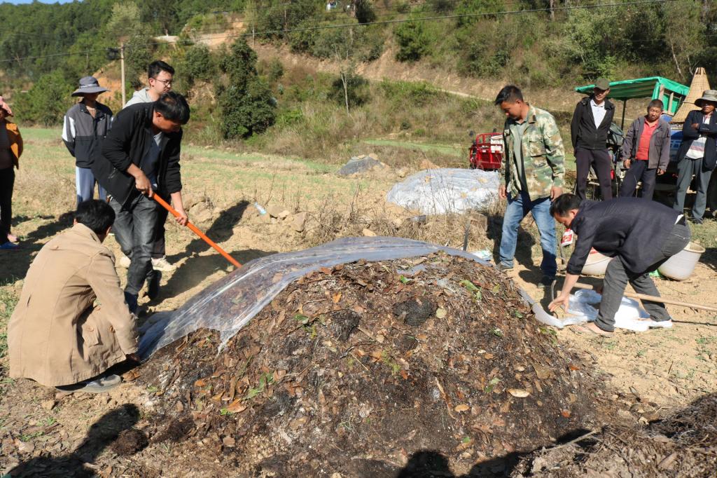 参会人员首先到中和镇直那大村大田营养土堆捂点进行现场观摩学习。观摩现场工作人员讲解了营养土堆捂要领、程序规范、注意事项,并示范了堆捂过程。