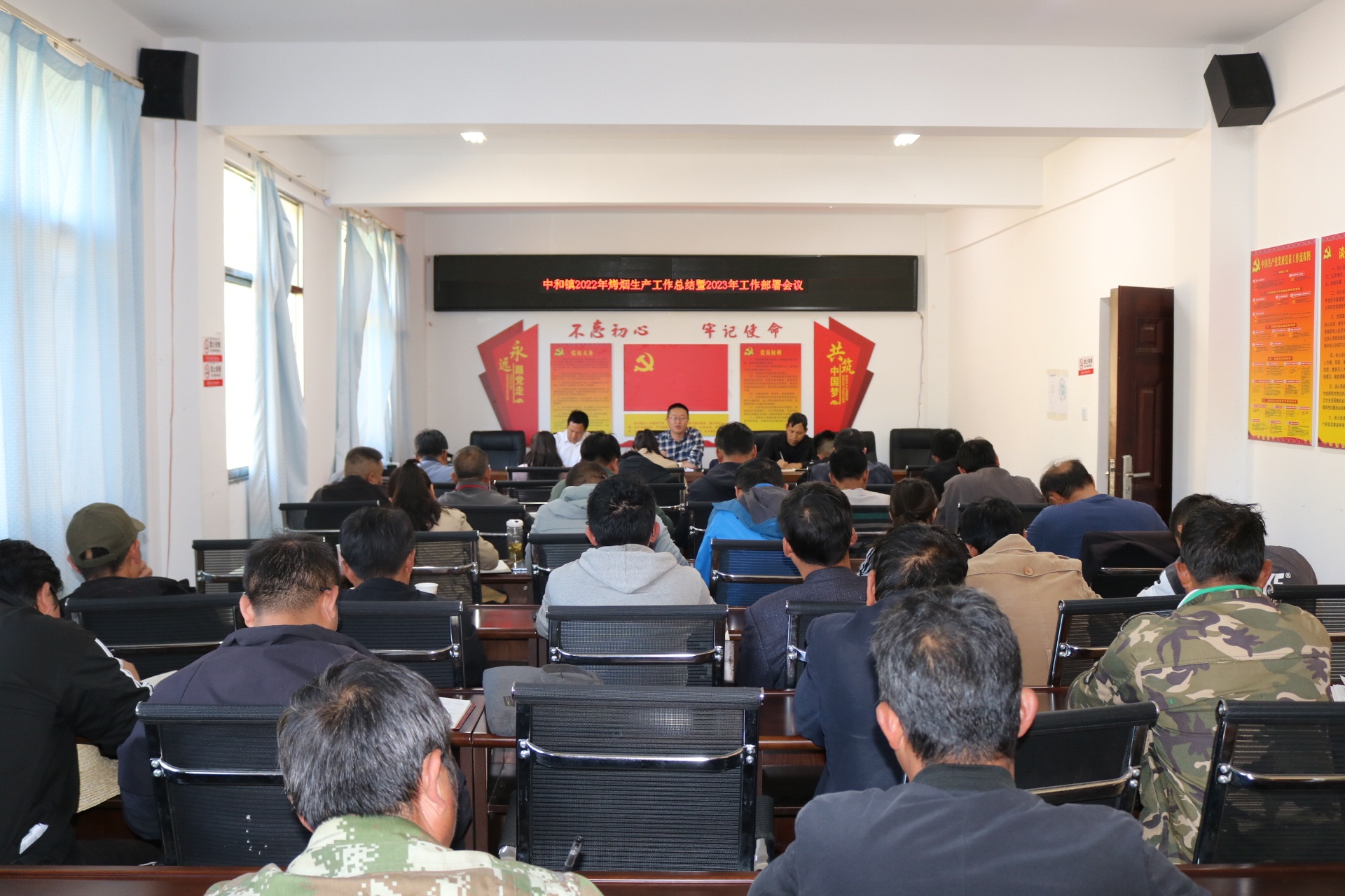 随后大家到中和镇直那村委会召开集中会议。会上镇人民政府镇长黄龙对我镇2022年烤烟生产工作作了总结,县烟草专班副主任王绍武作了工作要求,镇人大主席樊华安排部署了2023年烤烟生产工作。