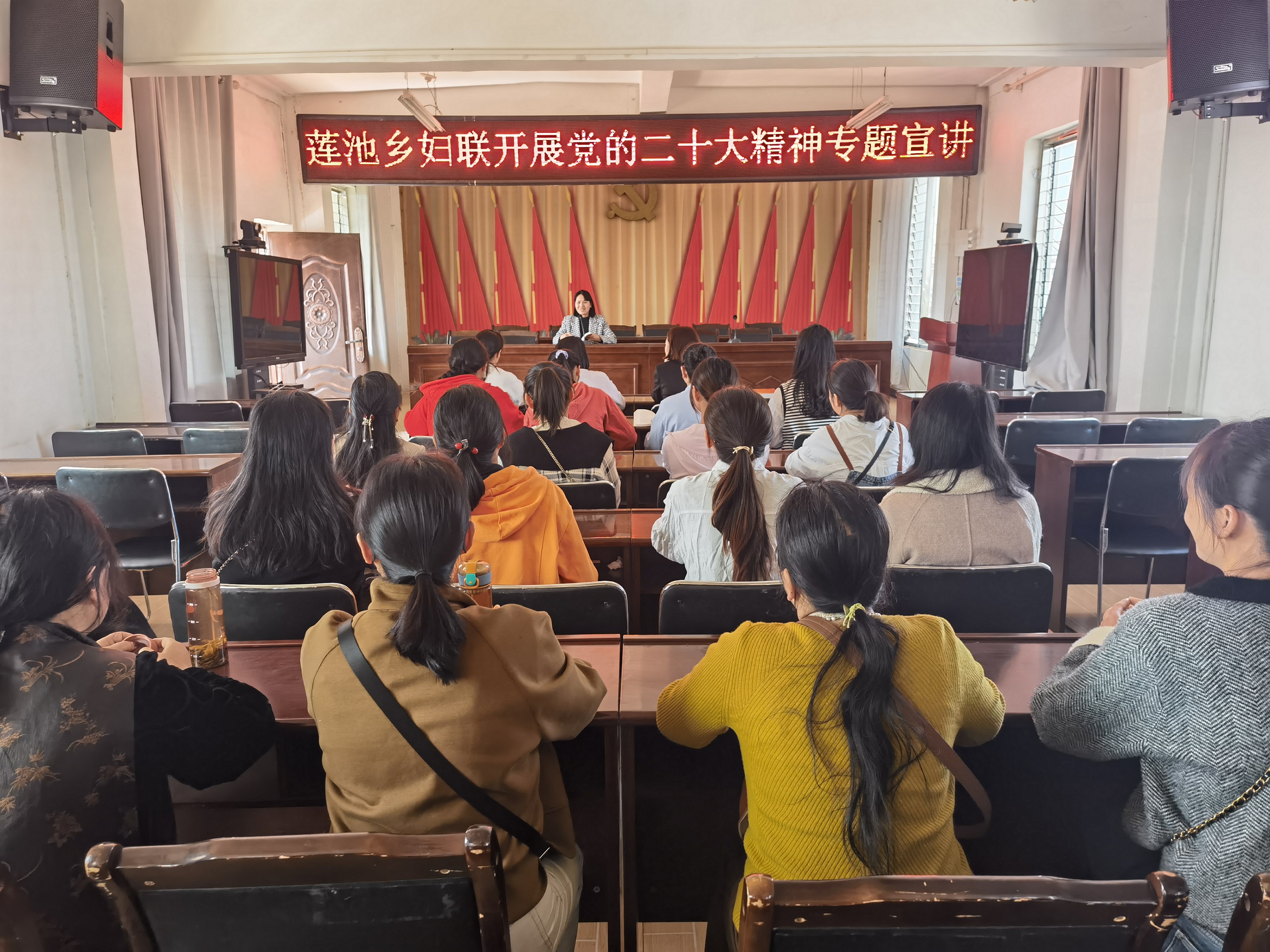 为全面学习好、宣传好、贯彻好党的二十大精神,莲池乡妇联多措并举迅速掀起学习宣传贯彻党的二十大精神热潮,以强烈的政治责任感和历史使命感,深学细悟、细照笃行,让党的二十大精神在“半边天”中落地开花。