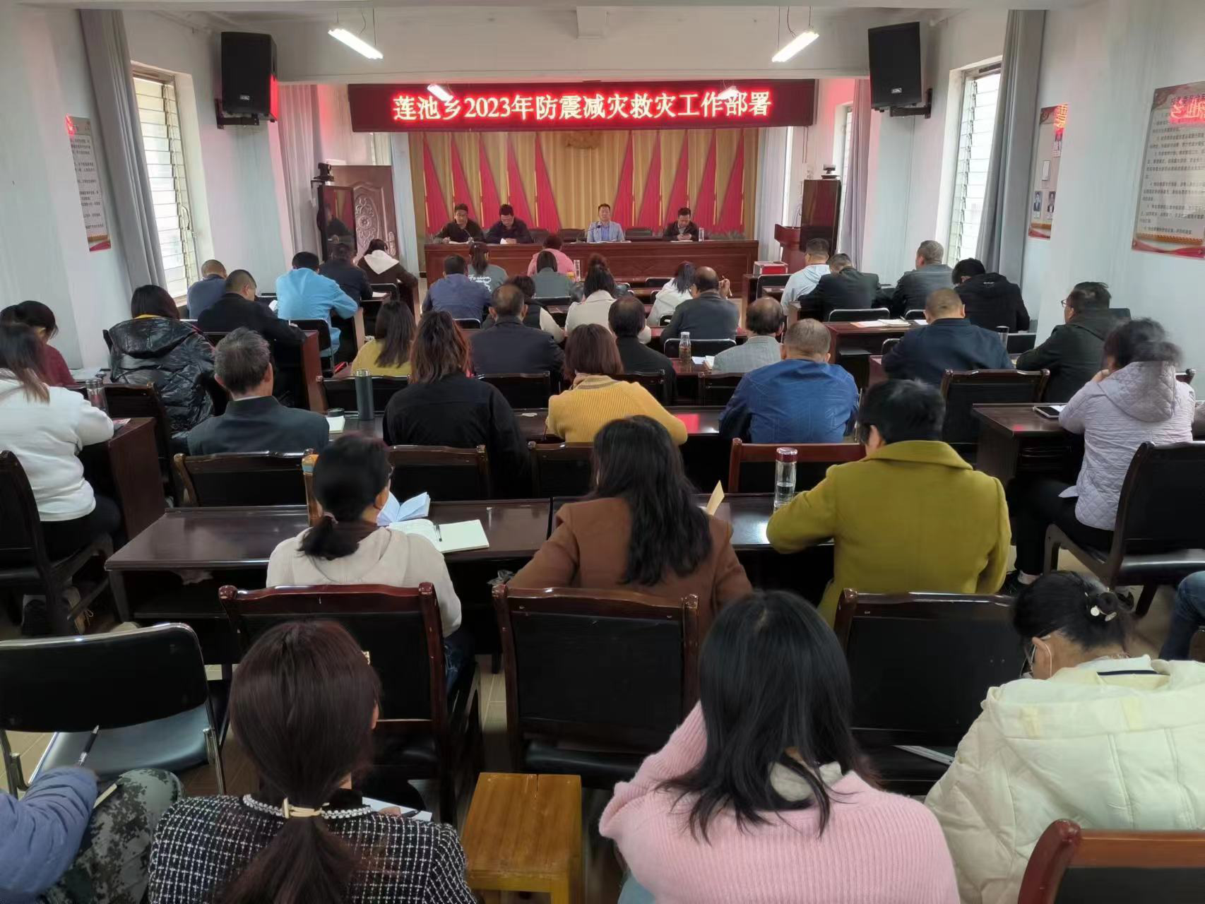 召开专题会议研究部署。3月13日,莲池乡召开2023年防震减灾救灾工作部署会议。传达学习楚雄州防震减灾救灾视频调度会会议精神以及彭县长相关工作部署安排,并对本乡镇防震减灾救灾工作做好安排部署。