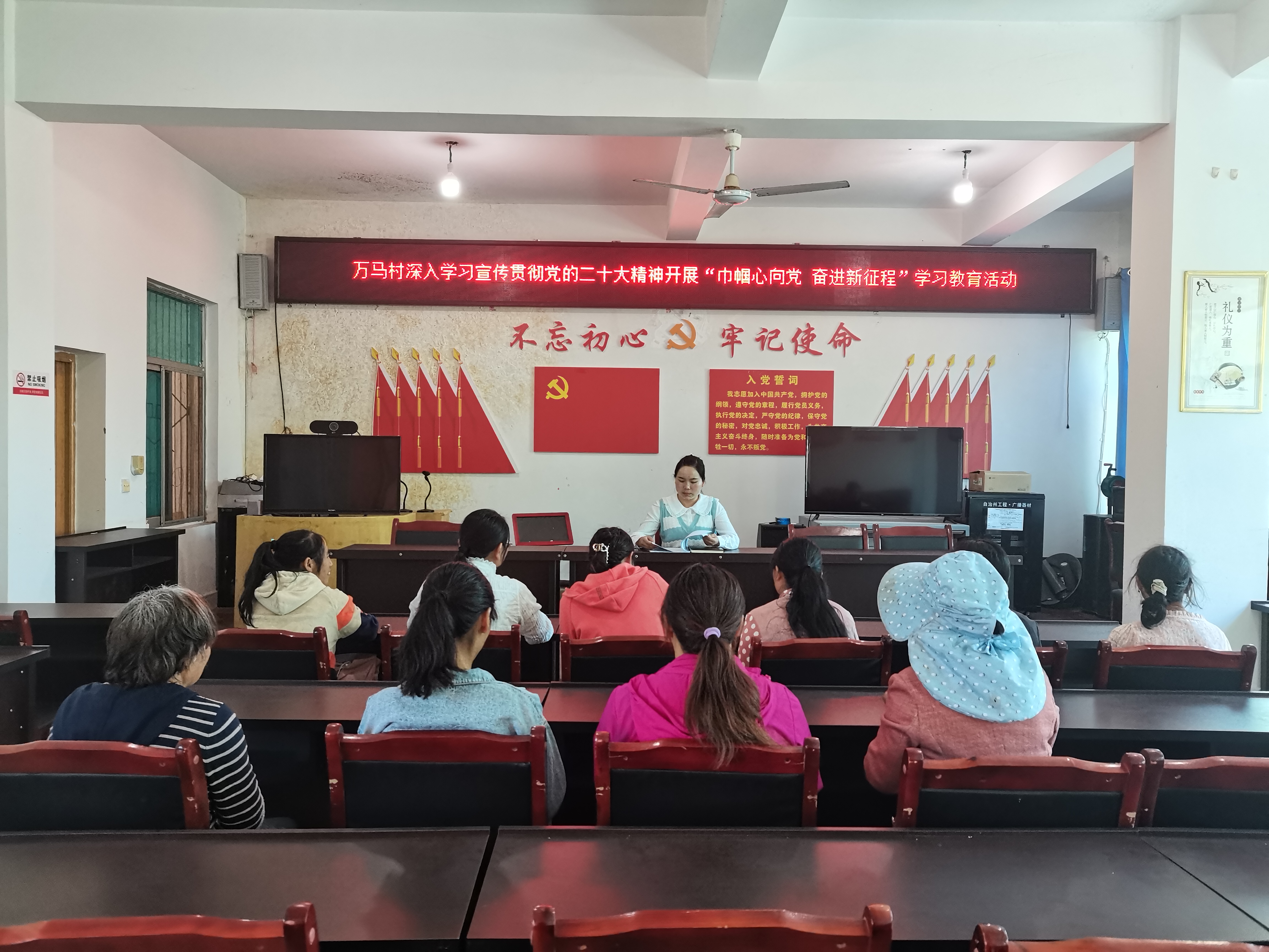 高举旗帜,深入宣传贯彻党的二十大精神。各村积极掀起大学习大宣传热潮,通过学原文,读原著,交心得的方式展开学习,切实把党的创新理论成果转化为坚定理想、锤炼党性和指导实践、推动工作的强大力量,引导广大妇女牢记嘱托,建设好家庭、传承好家教、弘扬好家风,坚定不移听党话、感党恩、跟党走。