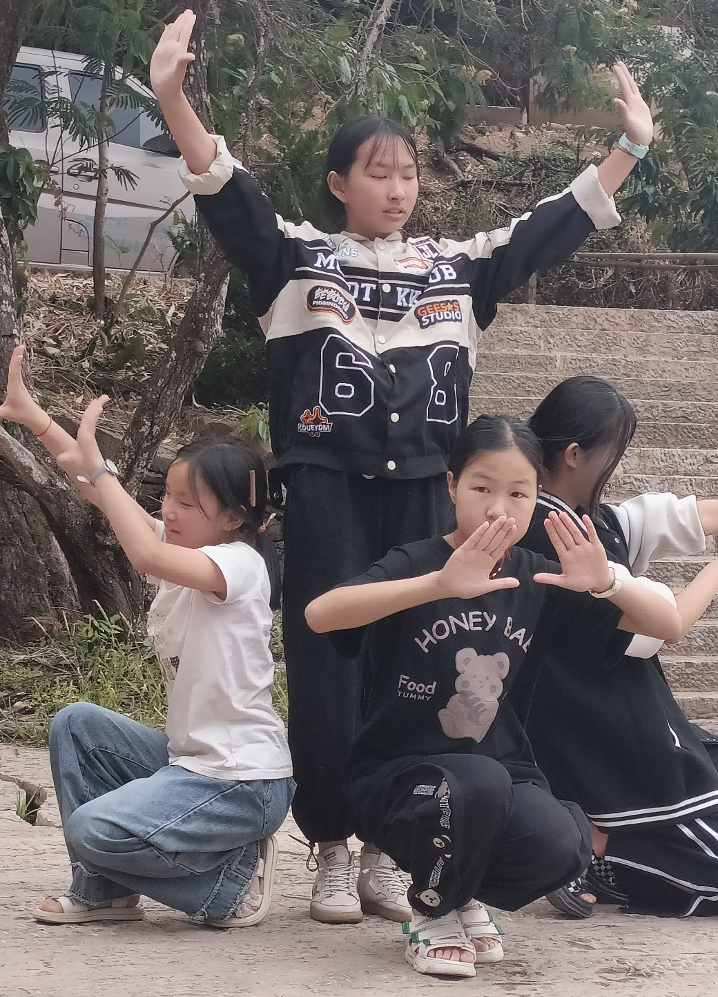到达目的地后,老师以“热身逆运动”的小游戏活跃现场气氛,调动起孩子们参与互动的积极性,引导孩子们阳光地对待生活中的一切,想办法排解心中的烦闷与不满。“齐跳彝族舞蹈”、“自创才艺展示”……孩子们在轻松的音乐中和轻盈的舞蹈中尽情放松心情和缓解压力。
