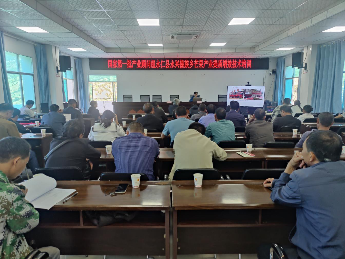 考察结束后,在永兴傣族乡政府会议室开展永兴傣族乡林果产业提质增效技术培训,专家组对永兴傣族乡林果产业取得的成绩予以了充分肯定,通过与合作社负责人、种植大户等面对面进行深入交流,为林果产业把脉问诊。一是针对热带水果品种选种进行推荐。二是对病虫害方式、修枝管理、肥料的使用进行详细分类讲解。三是针对鲜果的采摘与保存提出可行性意见建议。会上专家组耐心的对种植大户提出的疑难问题进行的详细的解答。