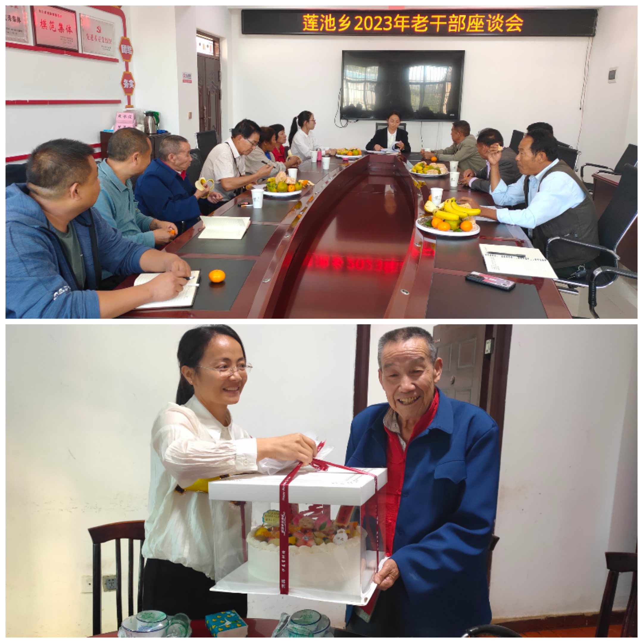 座谈交流会上,聂正美同志代表乡党委向各位老领导、老同志们致以迟来的节日问候和诚挚的祝福,向为莲池的发展进步付出辛勤汗水、作出积极贡献的退休老干部们表示最崇高的敬意和最衷心的感谢,并汇报了今年以来莲池乡工作开展情况及取得的成绩。与会老干部们感受到组织的关怀和温暖。他们表示会一如既往地支持莲池支持家乡的发展,老有所为发挥余热,积极建言献策,为莲池各项工作不断向前发展再做贡献。与此同时在这个特殊的节日里,迎来了离退休老党员76岁生日,小小感恩心浓浓敬老情,为离退休老党员送上生日节日美好祝福。一杯清茶,一声问候,老同志们回忆曾经的峥嵘岁月,共话当下美好生活与发展变化,年轻党员在这场生动的感悟分享中获益良多。