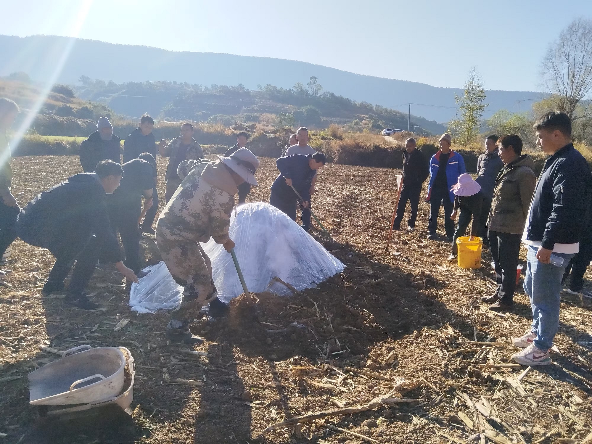 现场技术培训与实操乡全体党政班子成员、各村党总支书记(主任)、负责烤烟工作的村七职、维的烟叶站全体职工、农业农村发展服务中心相关工作人员以及永仁同心烟农专业合作社维的片区工作人员齐聚桃苴村委会恩就小组豆田坝。工作人员深入田间,结合实际操作,详细讲解了营养土堆捂的技术要领、程序规范、注意事项等关键内容,并亲自示范了堆捂的全过程。参会人员纷纷动手实操,通过亲身体验加深了对技术的理解和掌握,为后续的烤烟生产工作打下了坚实基础。