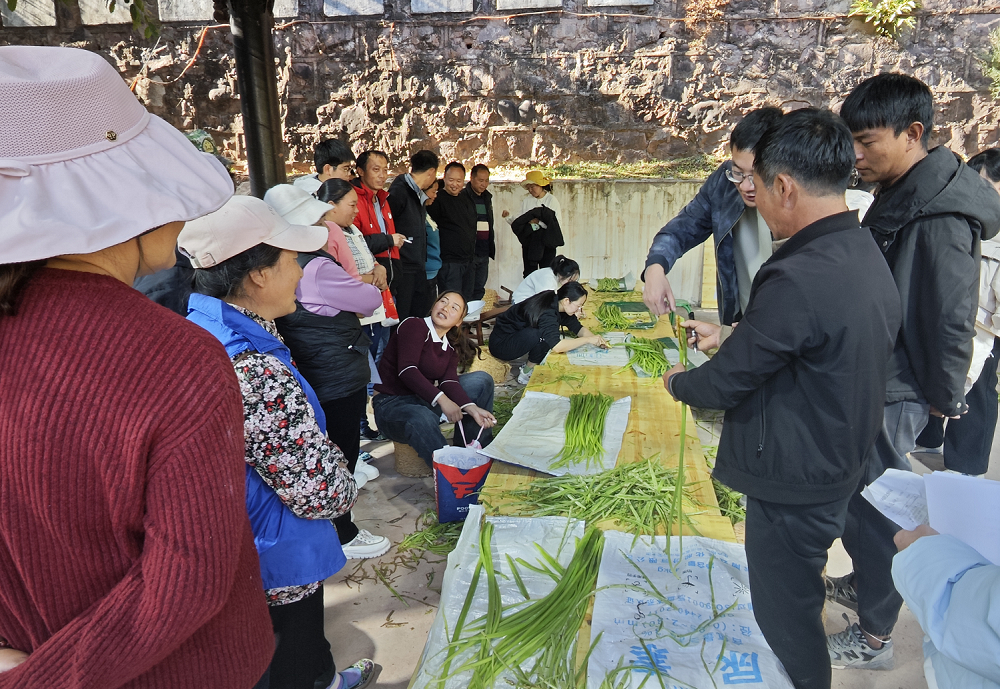 在培训现场,中和镇鲜禾贡菜种植专业合作联合社社长林玉贵讲解了贡菜种植管理过程中施肥、病虫害防治等技术要点,并对种植户种植过程中出现的问题进行逐一解答。同时,现场各种植大户开展加工技术比拼,结束后统一由联合社社长林玉贵进行点评打分,并手把手教种植户进行修叶、削皮、开条、晾晒,在贡菜加工过程中刀具选用、开条技巧、晾晒摆放等方面向种植户提出合理化意见。