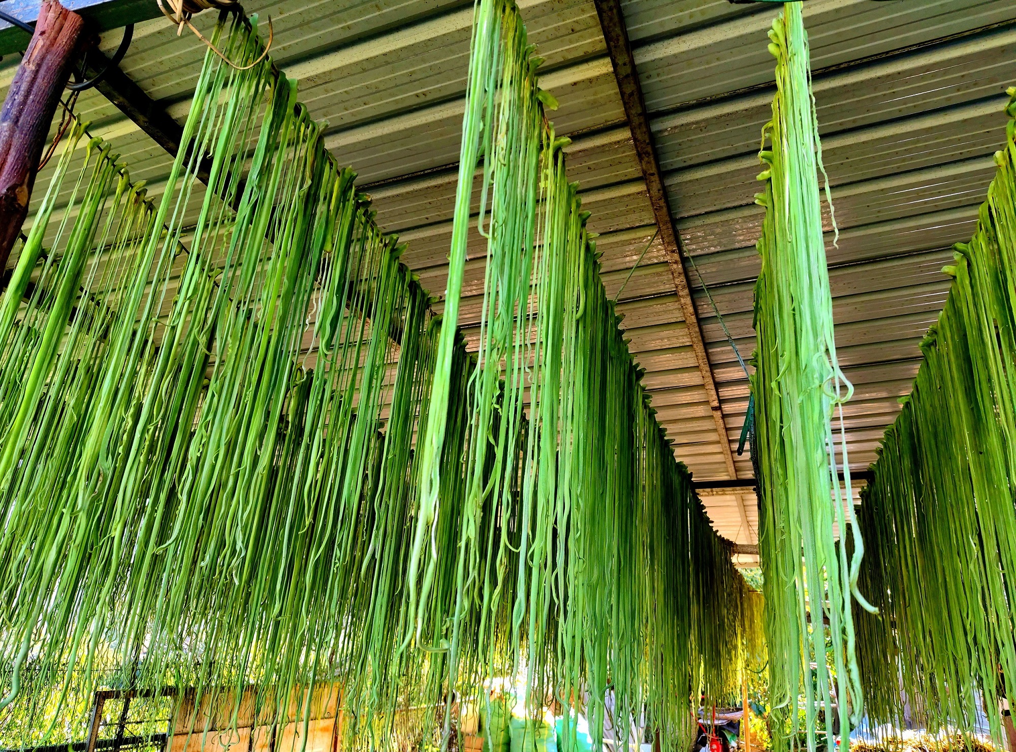 时下,正是中和镇第一茬贡菜采收、加工的季节,田间、家门口随处可见农户们忙碌的身影。一排排加工好的贡菜条挂在晾晒杆上,像片片“绿帘”,风吹帘动,醉人心弦。