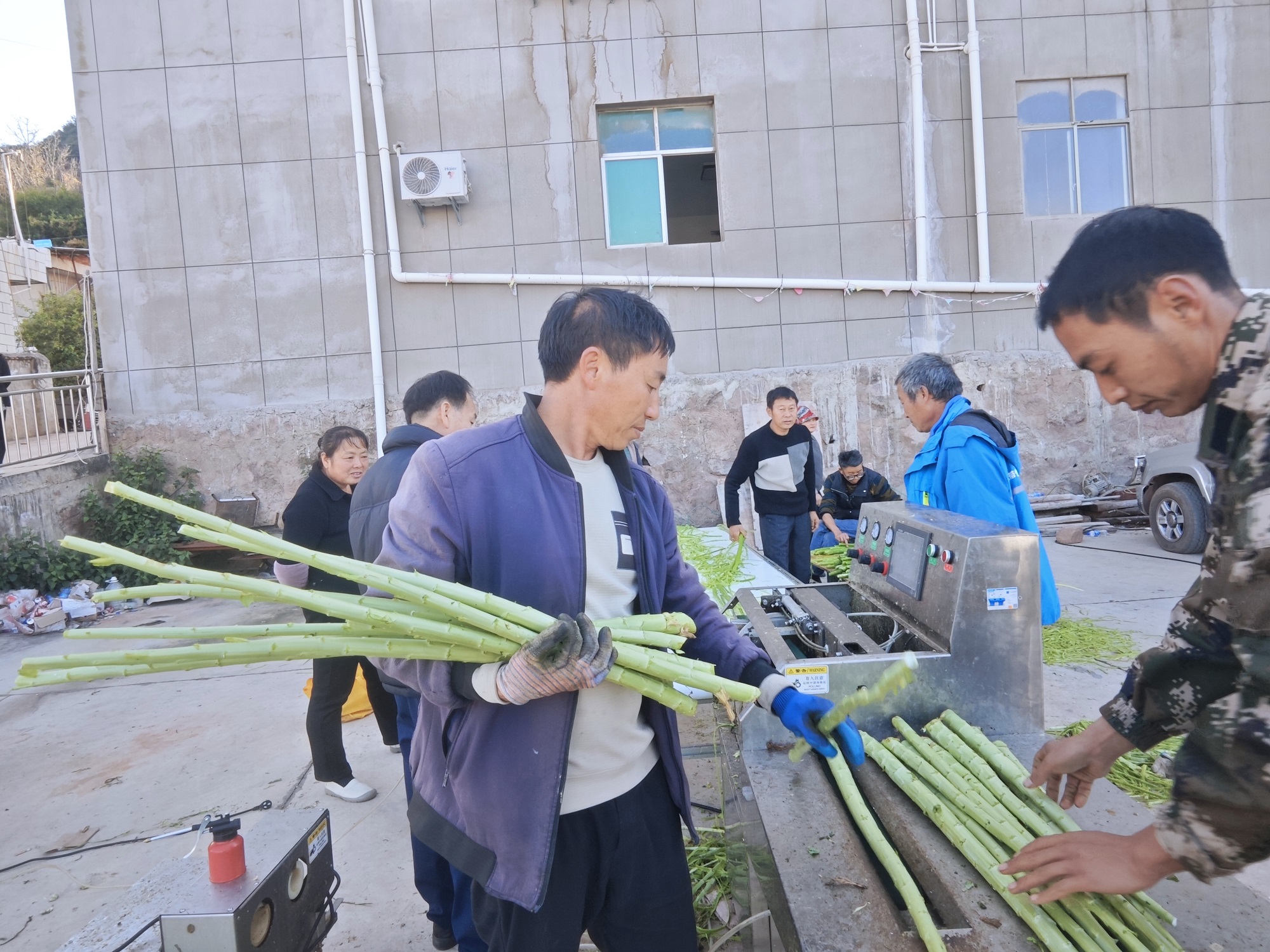 据杨仕海介绍,去年他种植了1亩多贡菜,管理得当,收入达1万多元。结合去年的经验,他发现贡菜采收、加工期要抢抓时间,延误时期,贡菜的品质和市场价格都会受到影响。于是今年,他投资10余万元,购入一套贡菜初加工设备,并在村委会的协调帮助下,租用农户闲置院子,成立了自己的贡菜初加工“小作坊”。