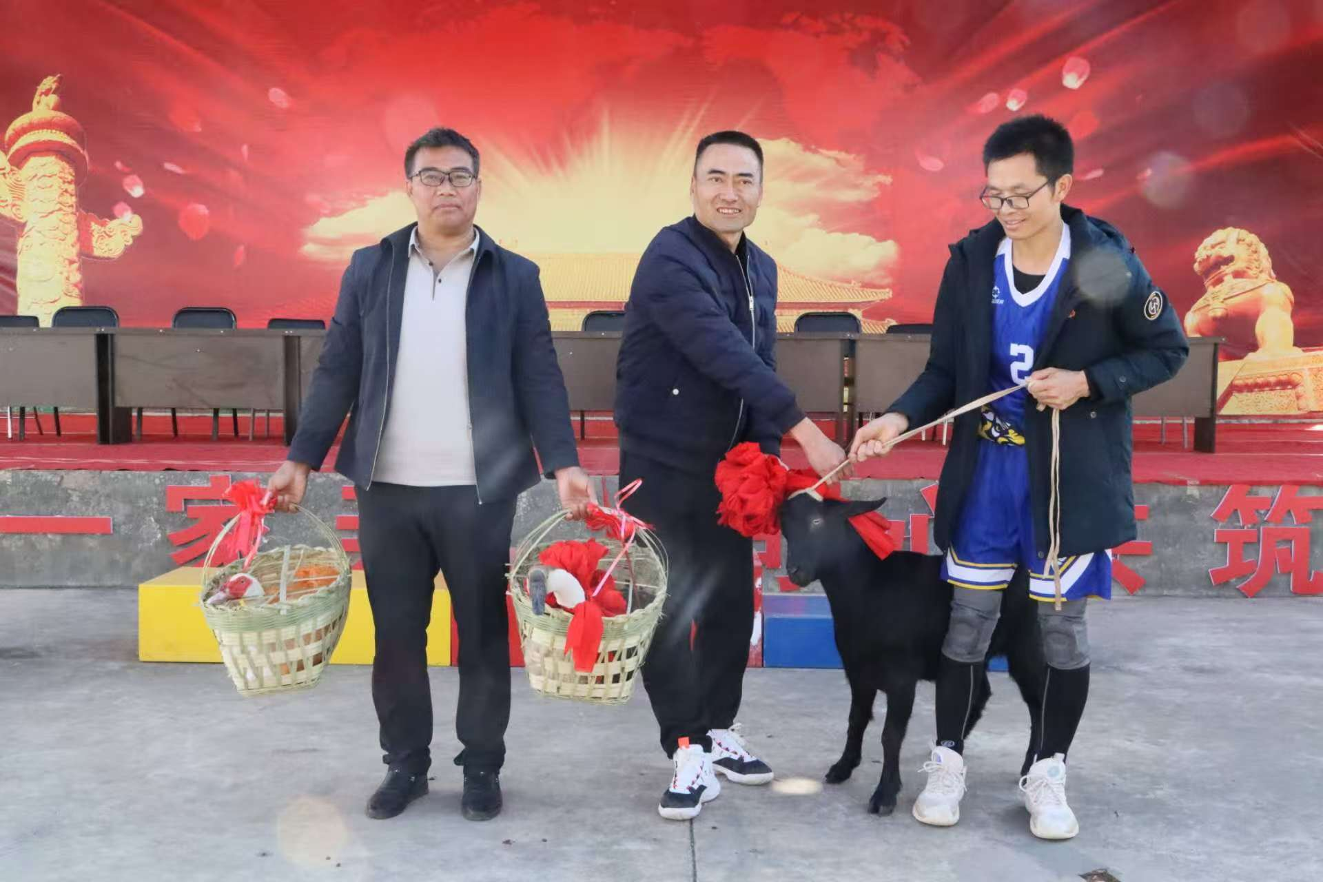 在颁奖现场,猛虎中心小学校长杨韬左手提着一只鹅,右手提着一只鸡,笑得合不拢嘴。在运动会中,他带领的团队分别获得了五人制篮球赛第二名、气排球比赛第二名的成绩。“很高兴参加这样的运动会!希望明年还举办这样的运动会。”杨韬说道。和他一样高兴的还有格租村党总支书记、村委会主任殷远宏。在运动会中,格租村代表队获得气排球比赛第一名的成绩,他们得到的奖品是一只火腿。同样,在现场,一只黑山羊被奖给了猛虎乡机关代表队,这支队伍在五人制篮球赛中获得了第一名。