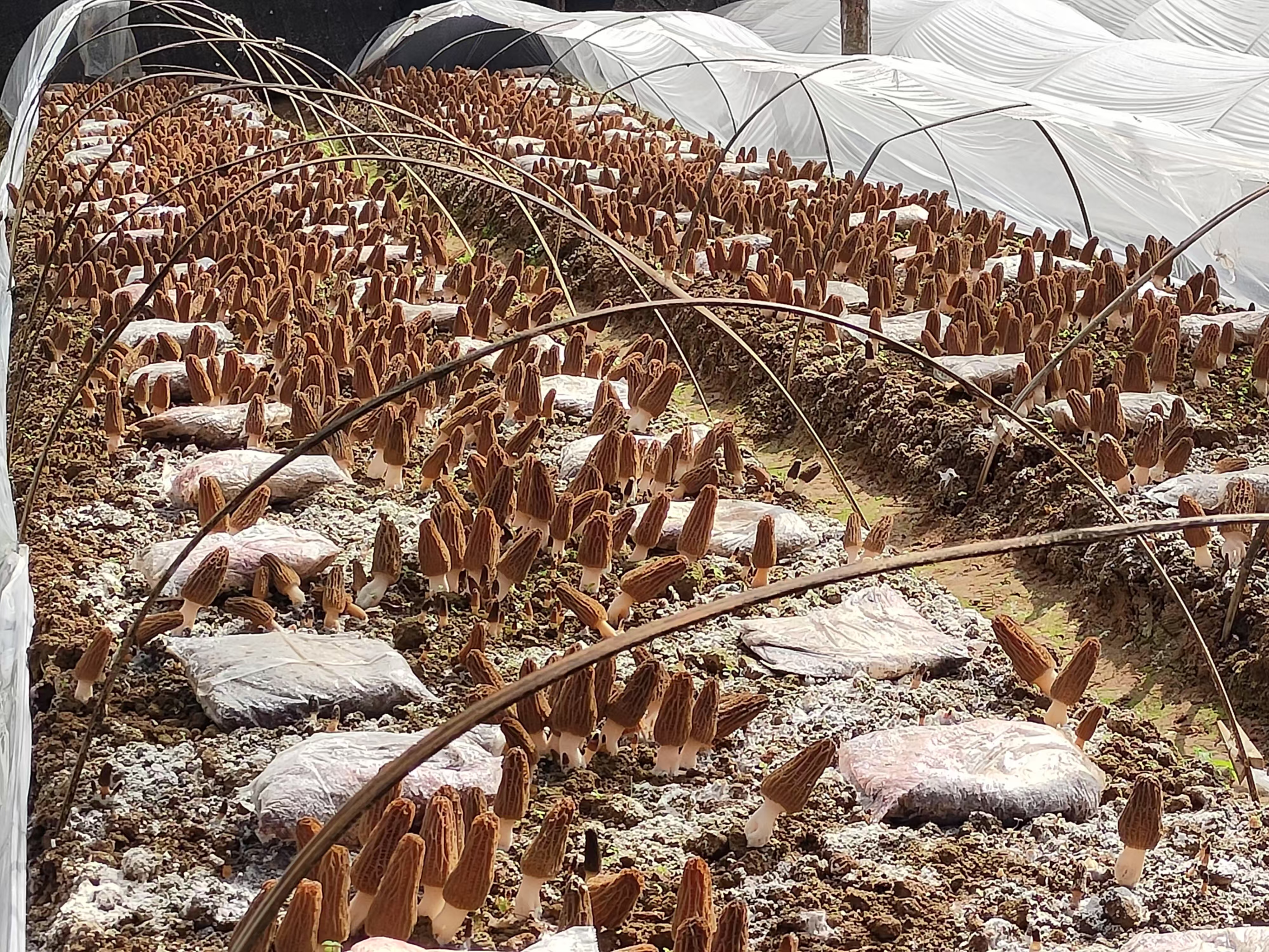 羊肚菌是一种珍稀食用菌品种,因其菌盖表面凹凸不平、状如羊肚而得名,营养价值高,种植周期短、见效快,市场前景广阔,可卖鲜菌,也可以烘干卖。一般冬季种植,春季采收,采收时节刚好与农忙时节错开,既能提升土壤肥力,又能把冬闲田利用起来,成为当地群众增收致富的新产业。