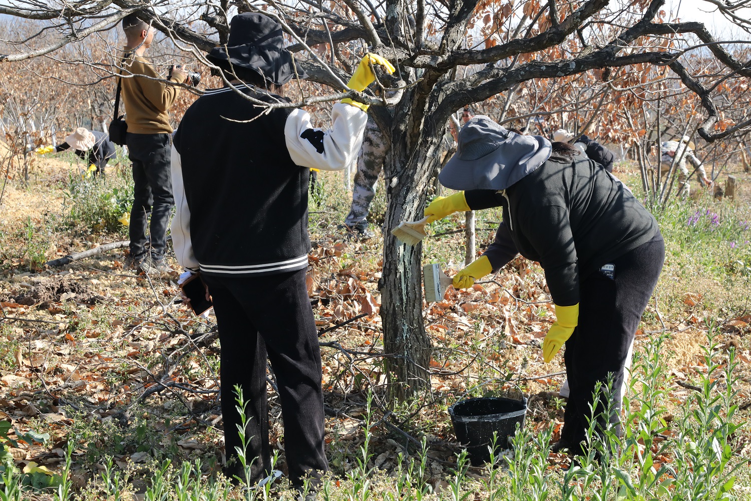 活动现场,在维的乡专业技术服务队的指导下,先采取为板栗树喷涂涂白剂的方式,把病虫危害损失控制在经济阈值以内。然后,分组开展了修枝剪型,为后续嫁接做好准备。怀着一颗为群众排忧解难的真心,代表们摩拳擦掌,纷纷拿上工具,与干部职工通力合作,以实际行动切实帮助栗农舒忧解难,增强了代表和群众间的凝聚力。