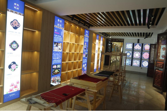 永仁县非物质文化遗产传承展示中心一楼为7个不同的展厅,分别是永仁记忆、文物古迹、非物质文化遗产、彝族服饰、苴却石艺、书吧、游客服务中心7个厅。二楼为苴却砚文化展区、苴却砚沉浸式体验区、彝族刺绣沉浸式体验区、AR互动体验、VR换装体验及休闲展示区、彝族刺绣工艺展示区、培训教学活动区。三层为彝族刺绣研发中心。