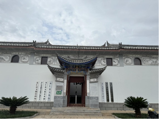 永仁县非物质文化遗产传承展示中心集游客集散、民俗展示、文物博物于一体,,由主体楼院、广场、绿化三部分组成。主体楼院为两个四合院,院落中间阁楼为三层,其余建筑层数均为二层,钢筋混凝土框架结构,屋顶为斜屋面,是展示永仁县民族文化成果、传承非物质文化、打造精品旅游县城的重要标志。