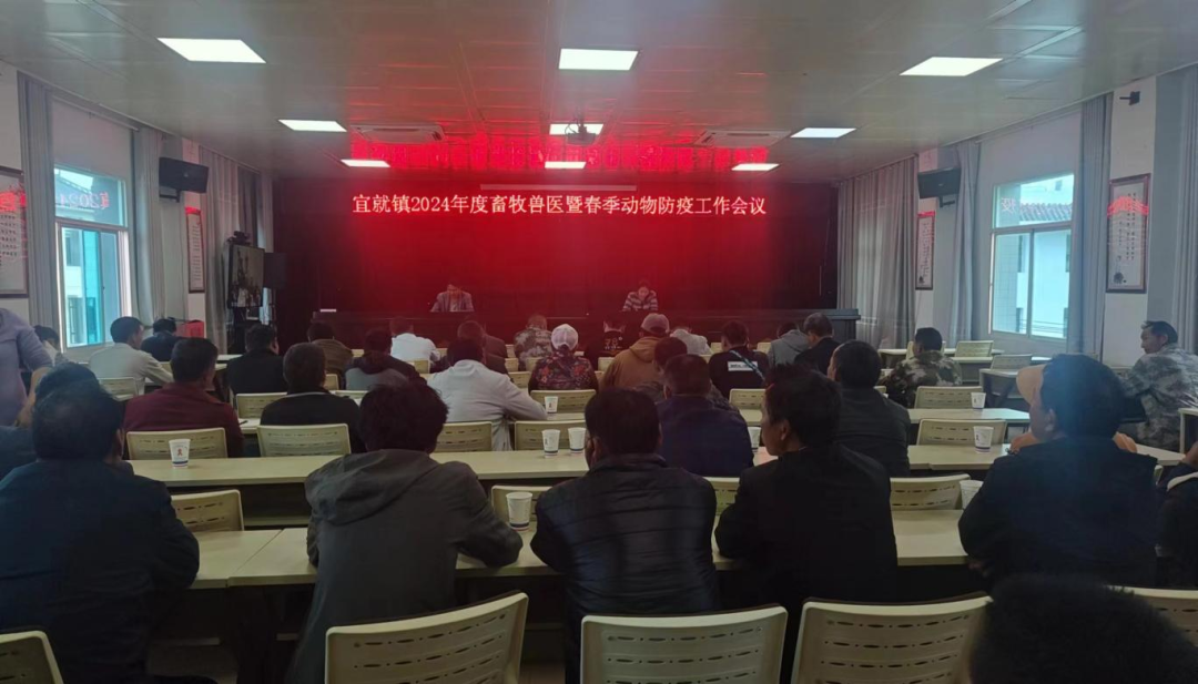 为做好2024年春季重大动物疫病防控工作,有效控制重大疫病的发生和传播,促进畜牧业健康有序发展,宜就镇组织召开了畜牧兽医暨春季动物防疫工作会议,邀请到县农业农村局高级畜牧兽医师、实验室技术总负责人、镇分管领导和农业农村服务中心全体工作人员、各村书记、部分小组代表、兽康动物防疫合作社成员或村级兽医员共计55人参加培训。