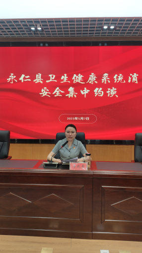 为深刻汲取丰台区“4.18”北京长峰医院火灾事故教训,永仁县卫生健康局于2023年5月7日在永仁县人民医院内科住院大楼8楼会议室,召开卫生健康系统消防安全集中约谈。由永仁县卫生健康局党委书记、局长李晓青对县级各医疗卫生单位(含民营医院)主要负责人及各医疗机构科室长、具体消防安全业务工作人员,局机关各股室长,七个乡镇卫生院执行院长、具体消防安全业务工作人员进行集中约谈。