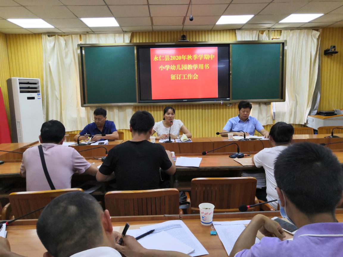 为进一步规范教学用书的征订和使用,永仁县2020年秋季学期中小学幼儿园教学用书和教辅材料的征订工作会议于2020 年 6 月 12 日在县教育体育局教科室三楼大会议室召开。会议的主要内容是安排近期的教育教学工作和征订、审核教学用书和教辅材料。
