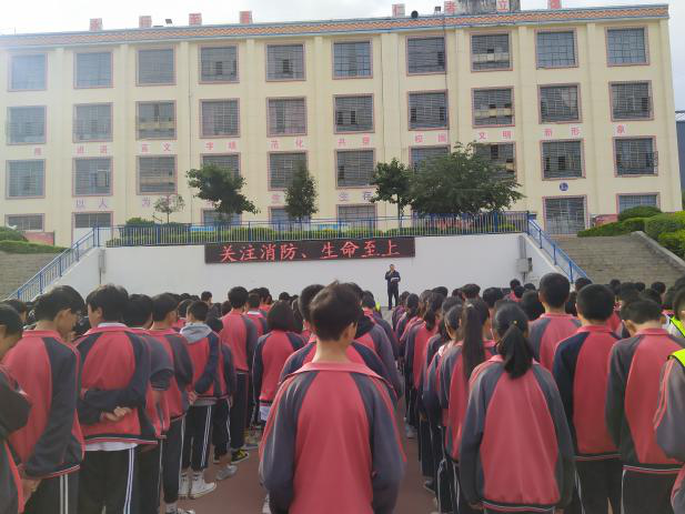 11月9日,民族中学利用课间操时间,开展了消防日活动,德育处李永宏主任向全校师生再次普及了安全方面的知识: