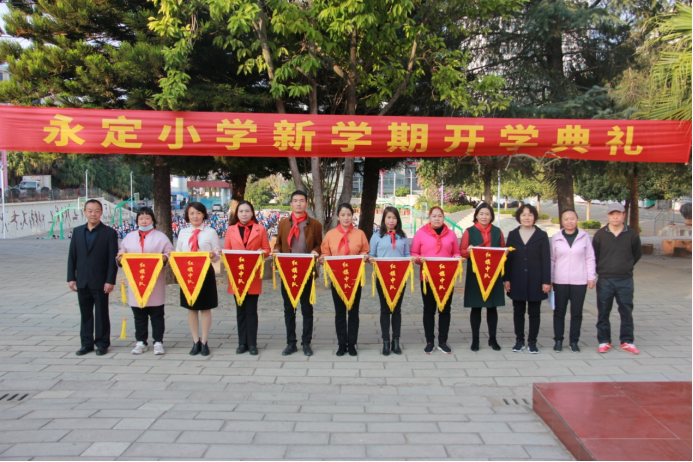 典礼最后,学校领导为上个学期班级管理中取得优异成绩的班级授予了流动红旗,号召全体师生再接再厉,把我校建成家长满意、社会满意的文明学校。