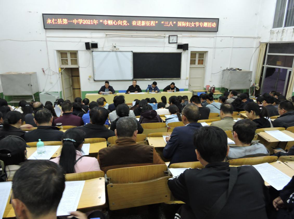 为集中展示党的妇女事业光辉历程,激励广大妇女为全面建设社会主义现代化国家贡献巾帼力量、以优异成绩迎接建党100周年,在“三八”国际妇女节纪念到来之际,根据州、县妇女联合会通知要求,结合我校活动方案,永仁一中于3月8日开展了2021年“巾帼心向党、奋进新征程”“三八”国际妇女节活动。