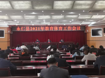 为认真贯彻落实中央和省州有关会议精神、总结2020年教育体育工作,安排部署2021工作任务,3月25日上午8:30分永仁县2021年教育体育工作会议在县政府五楼大会议室召开。县人民政府副县长罗德宝出席会议发表《打好收官战下好先手棋努力办好人民满意教育讲话》的讲话,县政协联系教育体育工作黎朝德到会指导,会议由县机关事务服务中心副主任李天荣主持。县教育体育工作各成员单位领导,教育体育局领导班子及全体干部职工,全县各学校校(园)长、书记共计90余人参加了会议。