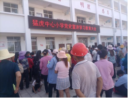 为加强党史知识的学习,进一步营造浓厚的学习氛围,猛虎中心小学党支部于2021年4月23日下午开展了一场别开生面的党史宣讲学习教育大会。宣主讲教师是党支部宣传委员张雅丽老师,参加宣讲学习的人员有全校师生、学生家长、司法所、派出所、卫生院主要负责人及人民群众约800人,张老师的宣讲分三个内容。